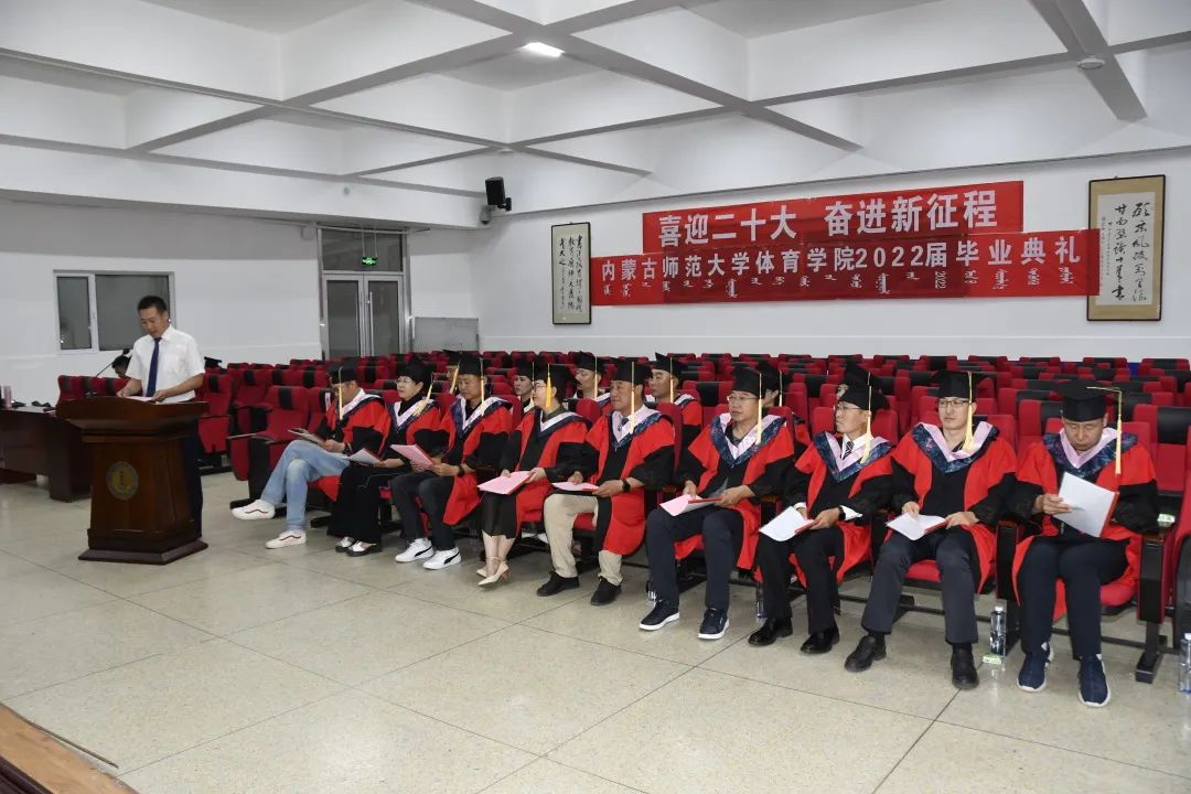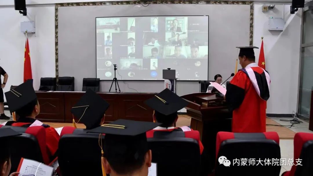 在毕业典礼上,体育学院全体教师和毕业生共同观看了内蒙古师范大学学校领导对毕业生的寄语视频。