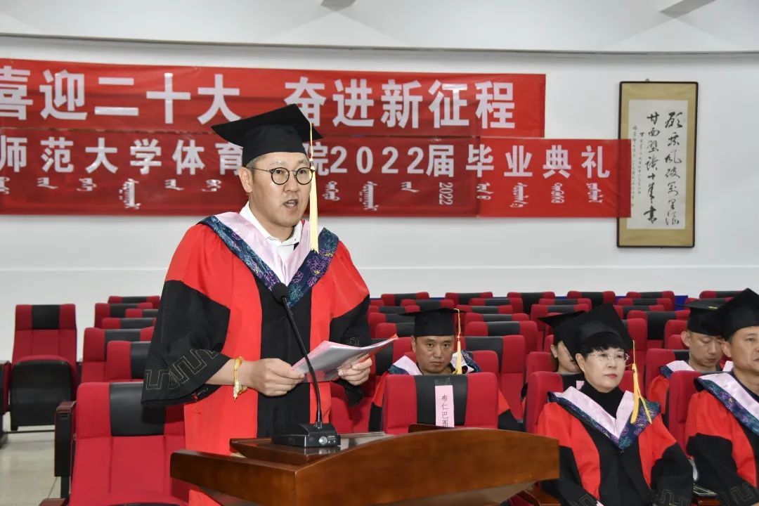 体育学院党委书记韩武,宣读体育学院2022届毕业生荣获2021—2022年自治区级“三好学生”、“优秀毕业生”、“优秀学生干部”名单。