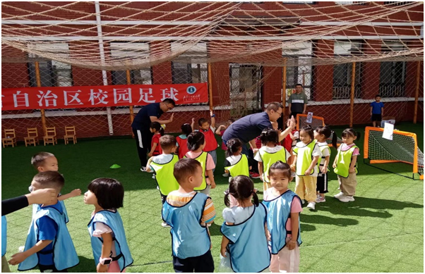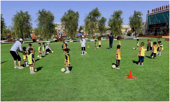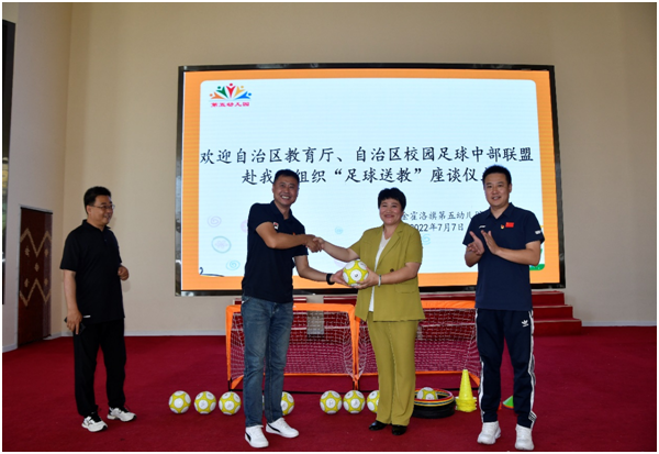 校园足球中部联盟2022年度“送教入园”活动在7月正式开展。“以党建 促体建”为主题,半岛在线登录官网入口作为中部校园足球联盟牵头单位,将按照教育厅校足办的工作部署对呼和浩特市、鄂尔多斯市、乌兰察布市、锡林郭勒盟四个盟市地区有针对性的进行幼儿阶段校园足球文化和理念传播、基础知识和技能传授。7月4日-7日按计划完成了鄂尔多斯市东胜、康巴什、伊金霍洛旗三个地区9所足球实验幼儿园的活动。活动在鄂尔多斯市教育体育局各级领导的高度重视下,顺利圆满的完成了此次活动。同时,“送教入园”得到了易锋足球俱乐部的大力支持。在此次活动中,足球教研室根据儿童年龄及心理特点,借鉴国内其他省市校园足球推广经验,结合我区实际,制定科学合理的实施方案,采用以玩代练,以玩带学的方法,感受足球乐趣,培养足球兴趣,接受足球文化。并以座谈的方式进一步深入了解基层幼儿园的开展近况及需求,效果显著,成果丰厚。此次活动将积累经验,弥补不足,丰富成果,为“校园足球”可持续发展提供理论和实践依据。
