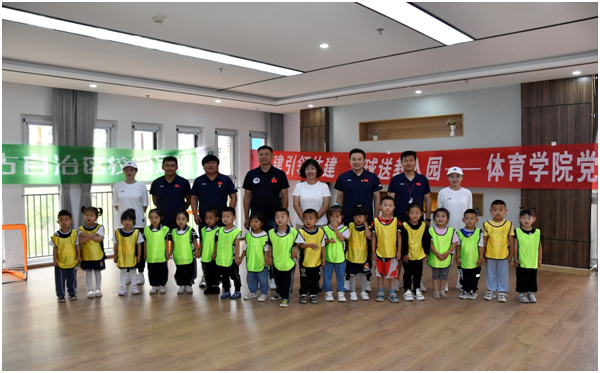 体育学院党委副书记敖永胜、副院长张磊为幼儿园赠送训练器材