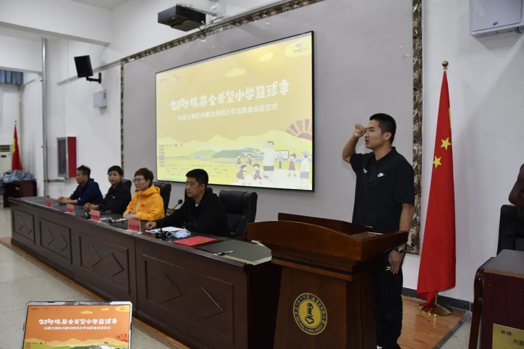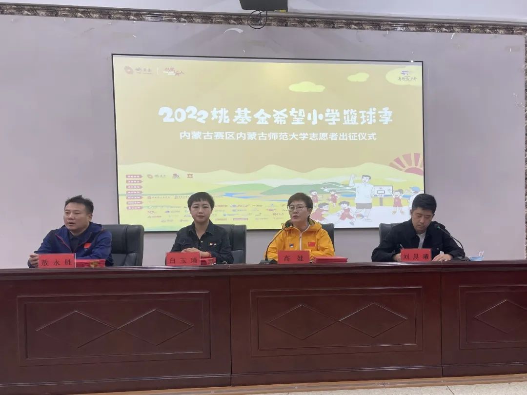 9月6日上午,“2022姚基金希望小学篮球季”支教志愿者出征仪式在体育学院举行,半岛在线登录官网入口院长高娃,半岛在线登录官网入口党委副书记、副院长敖永胜,内蒙古青基会项目管理部副部长白玉瑾及全体支教志愿者出席仪式,仪式由半岛在线登录官网入口团总支书记刘晨曦主持。