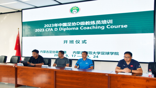 2023年9月17日,中国足协D级教练员培训班在内蒙古师范大学盛乐足球学院开班。本次培训班由中国足协教练员讲师,亚足联职业级教练、原国家队、北京国安队员,北京国安队前教练王少磊担任主讲,亚足联B级教练、内蒙足协E级教练员讲师周强担任讲师助理。