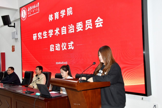 2024年4月24日下午,我院召开“研究生学术自治委员会”启动会议。体育学院副院长李凤新、副院长满喜出席会议,各位研究生导师、学工办老师、研究生学术自治委员会全体成员以及体育学院研究生参加会议。会议由研究生学术自治委员会委员郭柯宇主持。
